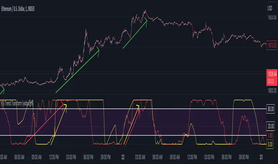 The RSI Trend Transform indicator is a dual-concept indicator that transforms volume data and price data into two different RSI values, which can then be used together to determine trend strength and momentum. The volume RSI does not use any price data in its calculation - it is purely a transform from nondirectional volume into a directional indicator.