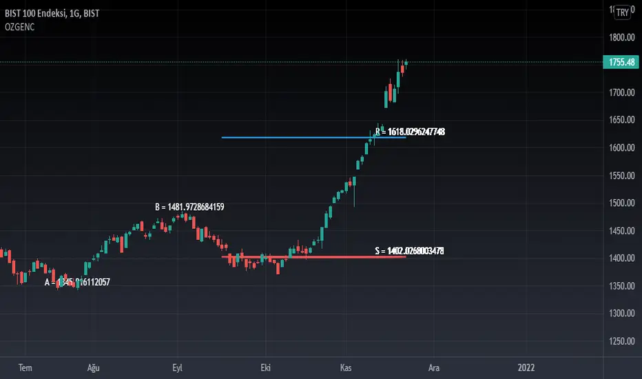Pattern formations enable traders to predict future significant points to buy and sell stocks. This might due to the scale-free nature of stock prices, also reflecting many phenomena in the nature. OZGENC indicator utilizes this to predict future potential support and resistance points. By choosing two local peak and throughs, the indicator estimates these potential points by calculating some kind of ratio between the two selected points. The indicator calculates these future points without using the accustomed Fibonacci ratio.