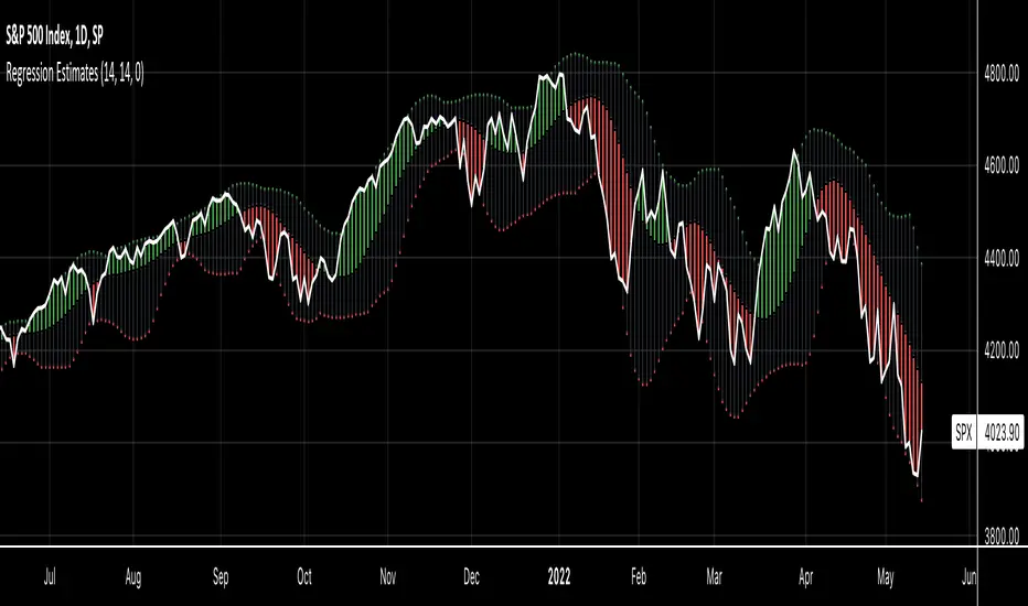 An experiment using Pinescript's candle plotting feature. This indicator performs a linear regression on the lows, highs, and moving average, and plots them all in the form of a candlestick. If the close is below the prediction, the candlestick is red, if the close is above the regression, the candlestick is green. Effective and aesthetic way to analyze trends.