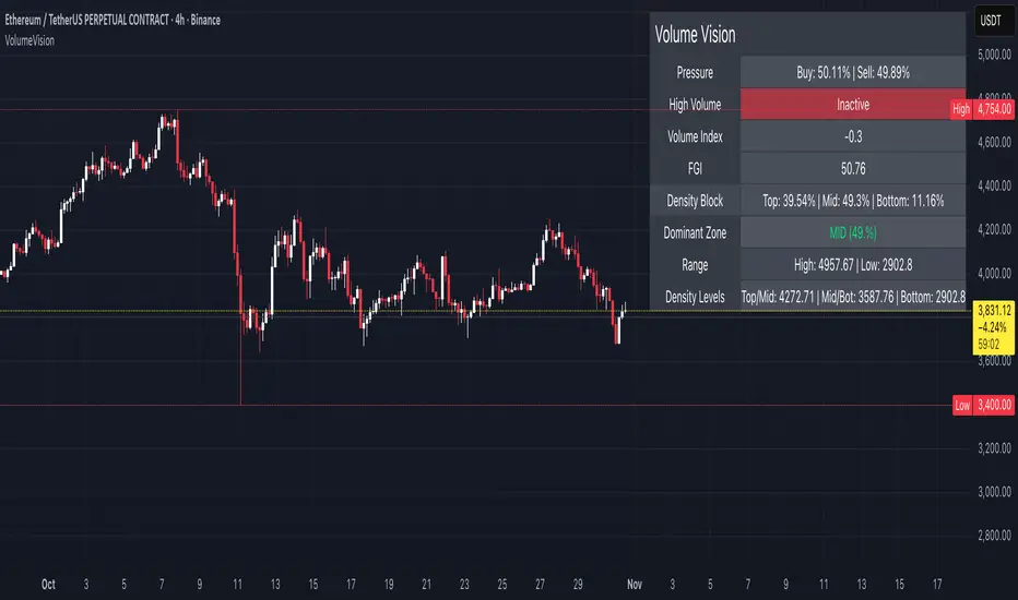 Volume Vision is a precision volume-analysis system that exposes how trading activity is distributed inside the current market range.