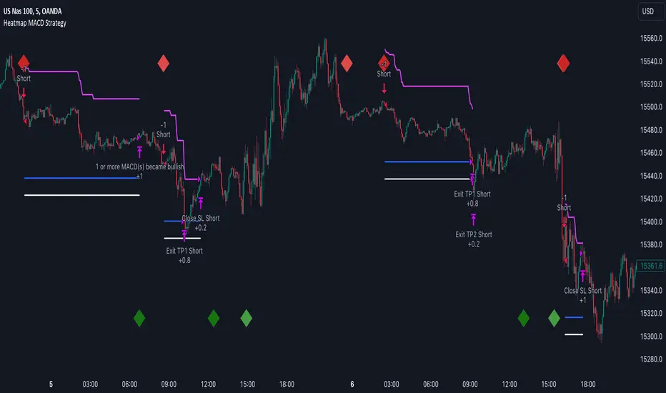 The Heatmap MACD Strategy allows selecting one MACD in five different timeframes.