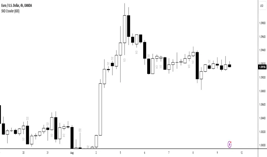 What's New:- Supply Zone Detection: I’ve expanded the SND Crawler to include four types of supply zones (S1, S2, S3, S4) in addition to the demand zones (D1, D2, D3, D4). This allows traders to identify key resistance levels where supply may overwhelm demand.