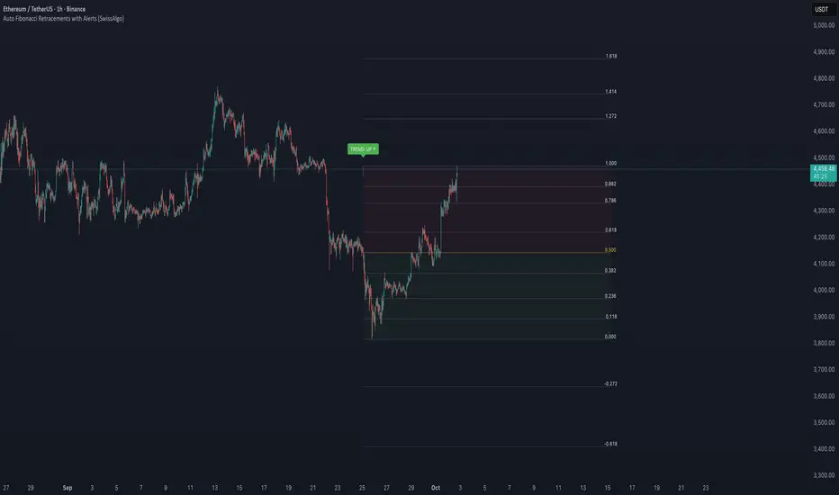 Auto Fibonacci Retracements with Alerts [SwissAlgo]