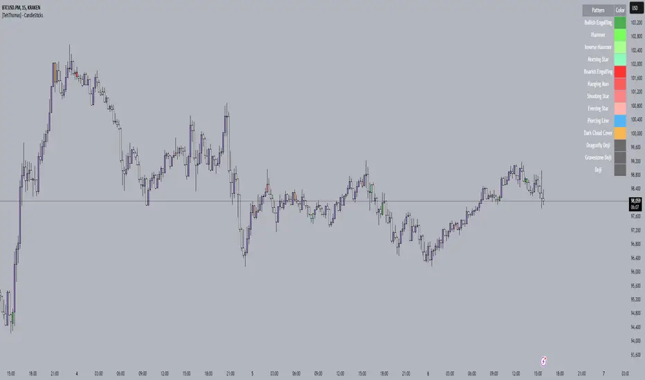 This script is a powerful visual tool for traders who rely on candlestick patterns. It helps identify potential reversals, continuations, and indecision zones in the market. While it’s highly useful for discretionary trading, it’s best used alongside other technical indicators to confirm trade setups.