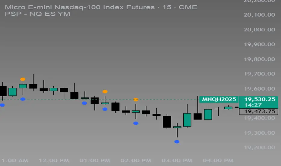 🔸 Orange dot (above candle) → When NQ and ES have opposite trends (one up, one down).
