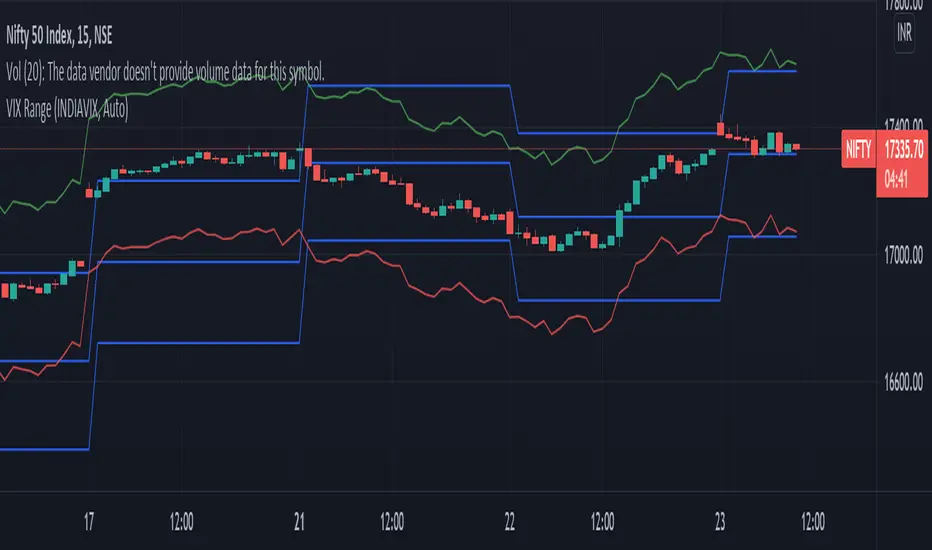 An upper and lower line denotes the range. It is calulated based on the volatility index selected (NSE:India VIX is used by default). Also it shows developing upper and lower line for the next trading day.