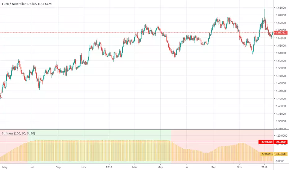 This indicator was originally developed by Markos Katsanos (Stocks & Commodities, V.36:12 (November, 2018): "The Stiffness Indicator").