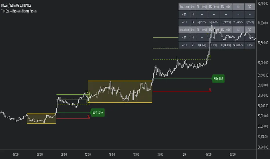 The TRN Consolidation and Range Pattern indicator utilizes a unique swing-based pattern recognition to pinpoint consolidation zones in real-time with unparalleled precision. The rectangle pattern, also known as a trading range or a consolidation pattern, is characterized by horizontal lines that act as support and resistance levels, creating a rectangular shape.