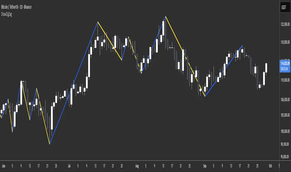 This function creates or extends the latest zigzag line. Takes real-time information about pivots and draws lines. It does not calculate the pivots. It must be called once per script and cannot be called from a loop.