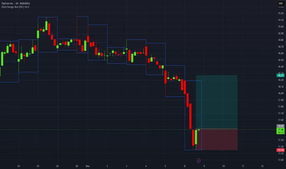 This update enhances the "Daily Range Box" indicator by adding user-configurable inputs for colors and line styles. Users can now customize the box border color and the midline color independently through dedicated color picker inputs. Additionally, separate dropdown menus allow selection of line styles (Solid, Dashed, or Dotted) for both the box border and the midline, enabling personalized visualization while maintaining the core functionality of drawing daily range boxes with midlines across all timeframes.