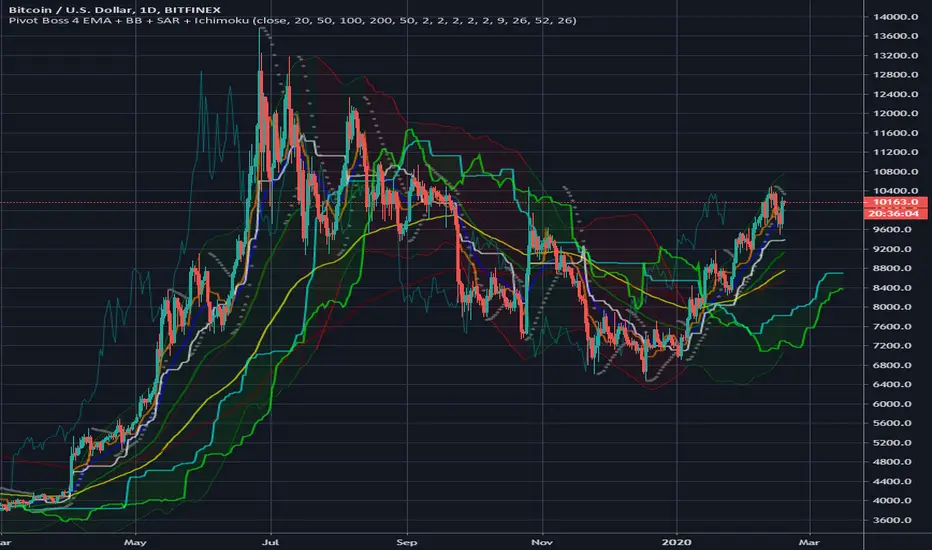 Pivot Boss 4 EMA + BB + Parabolic SAR + Ichimoku