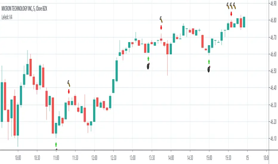 Leledc Exhaustion Bar indicator created by glaz converted to Pine 4, plotshape was added.