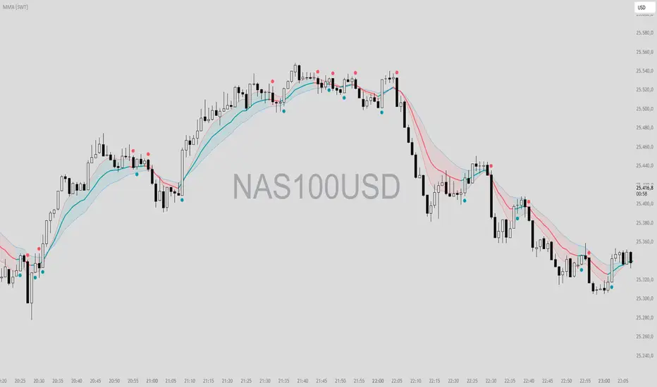 Volatility Visualization (Cloud): Thanks to the "Trend Cloud" between the two primary averages, you can immediately visualize price expansion and contraction.