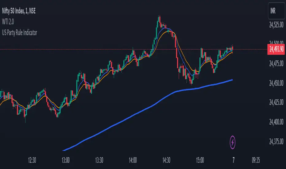 This indicator visually represents the political party in power in the United States over a specified period. It overlays a colored 200-day Exponential Moving Average (EMA) on the chart. The color of the EMA changes to reflect the ruling party, providing a visual representation of political influence on market trends.