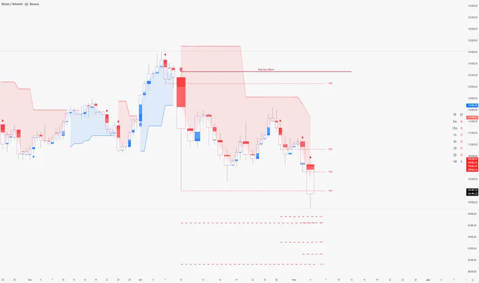 Alternative Supertrend Stop-Loss: The proprietary Supertrend line can be used as a dynamic trailing stop. The stop-loss is placed behind the Supertrend line, and a candle close beyond this line also signals a trend violation and the need to exit the position.