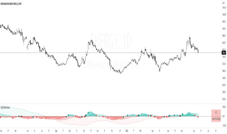 1. First mountain ( darker opacity ) = ema5 - ema20