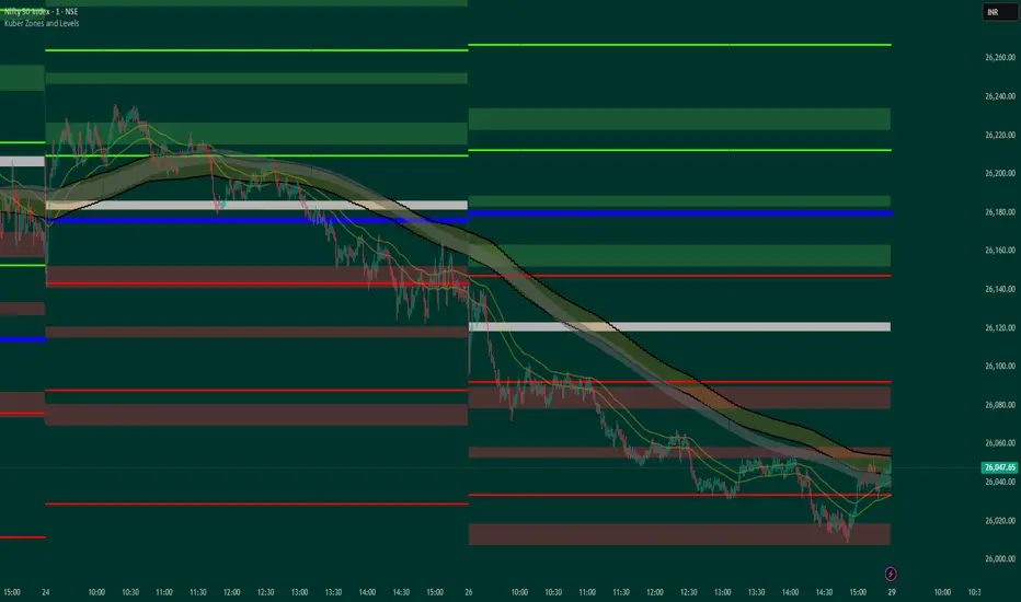 The indicator dynamically maps key price areas, market equilibrium regions, and extended levels using completed market cycles, helping traders identify important reaction zones across intraday and positional timeframes.