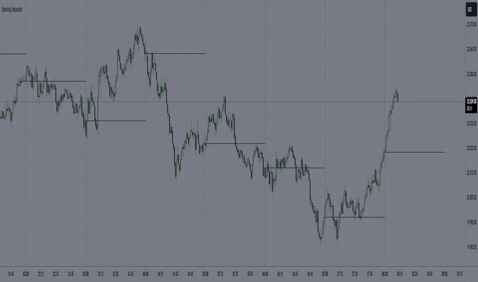 This indicator shows the vertical and horizontal opening lines for the hourly timeframe.