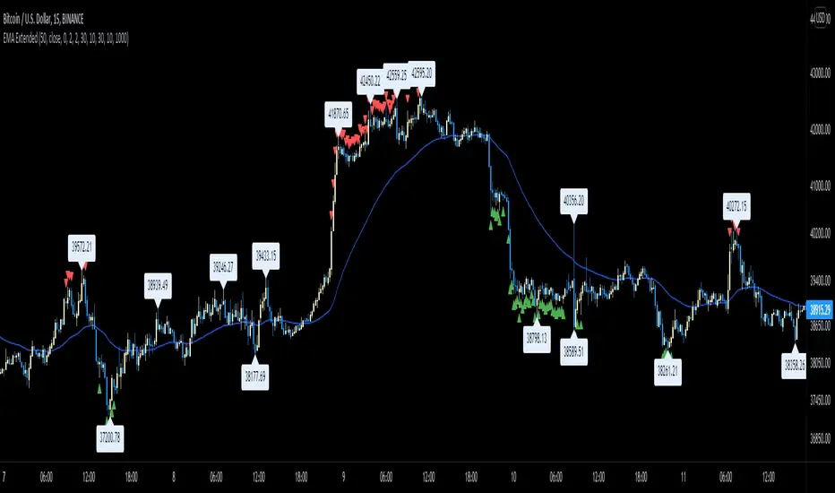 The general idea behind the indicator is that when price is extended away from an EMA (usually the 50 EMA for the Market Maker strategy), it usually comes back to it. When monitoring many assets or cryptocurrencies, this indicator (with Alerts) provides ease of mind to spot such opportunities across the board.