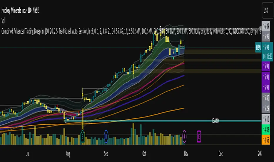 Stacked EMAs, some SMA, VWAP, Smart Money Concept stuff all wrapped into one