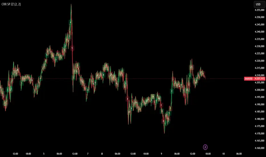 Each leg receives a number from 1 to 5, showing the "Elliott" wave sequence simply and automatically.