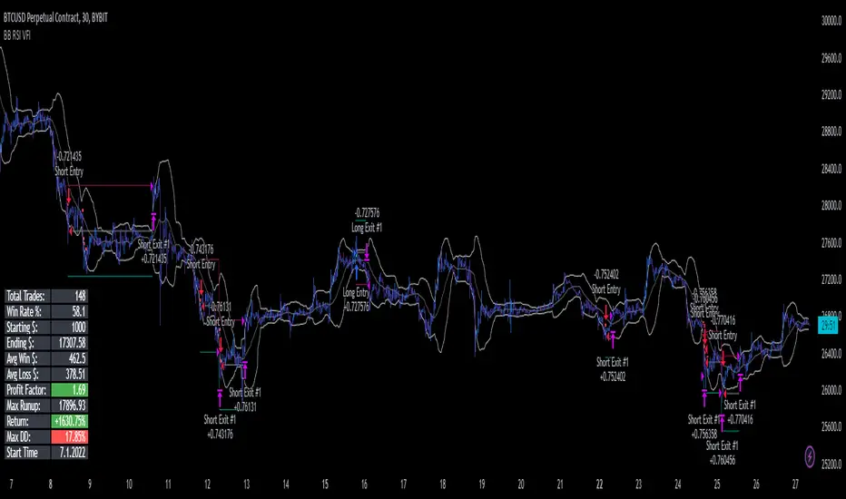 The Settings are optimized for Bybit BTC USD Perpetual on 30 Minutes; make sure to optimize the Settings for different Markets and Timeframes.