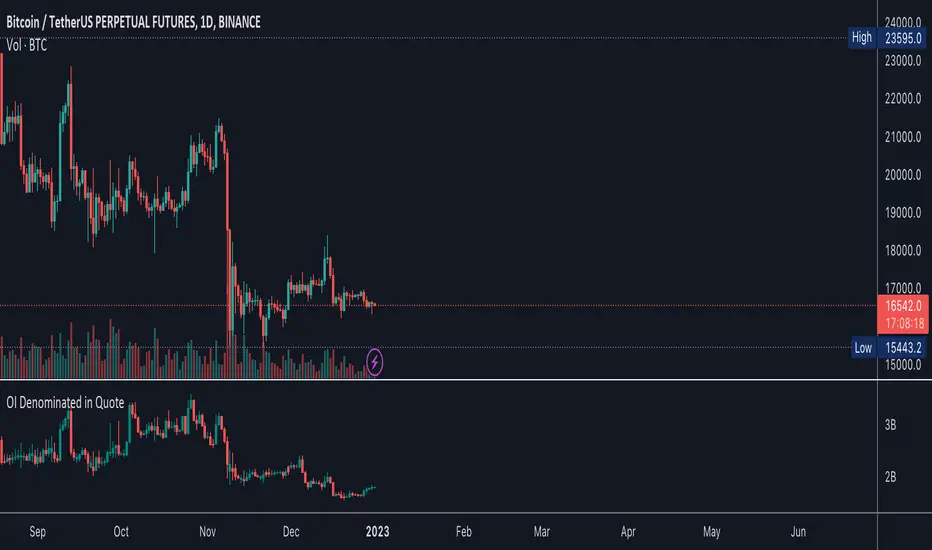Open Interest indicator in TradingView doesn't have option to denominate in quote, so I made one.