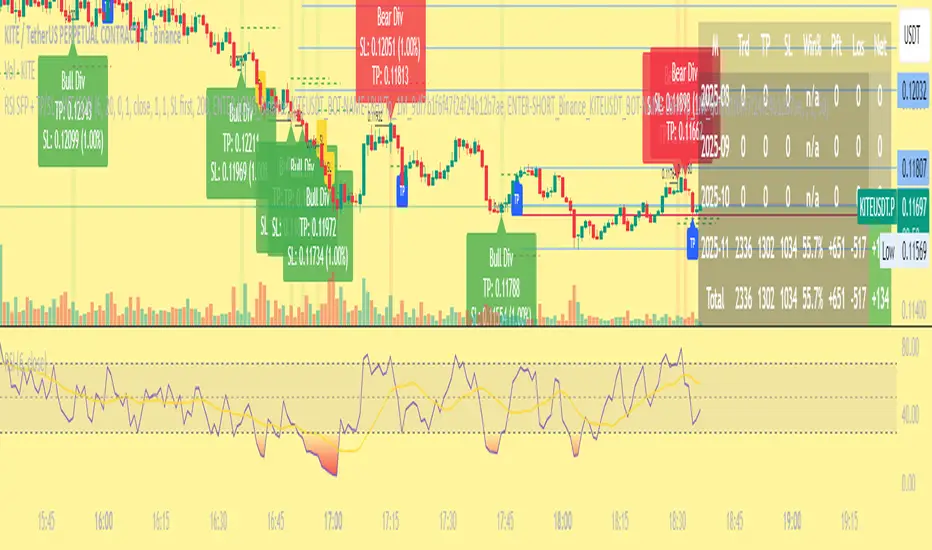 RSI SFP is a next-generation reversal detection engine combining market structure (Swing Failure Pattern) with RSI divergence confirmation.