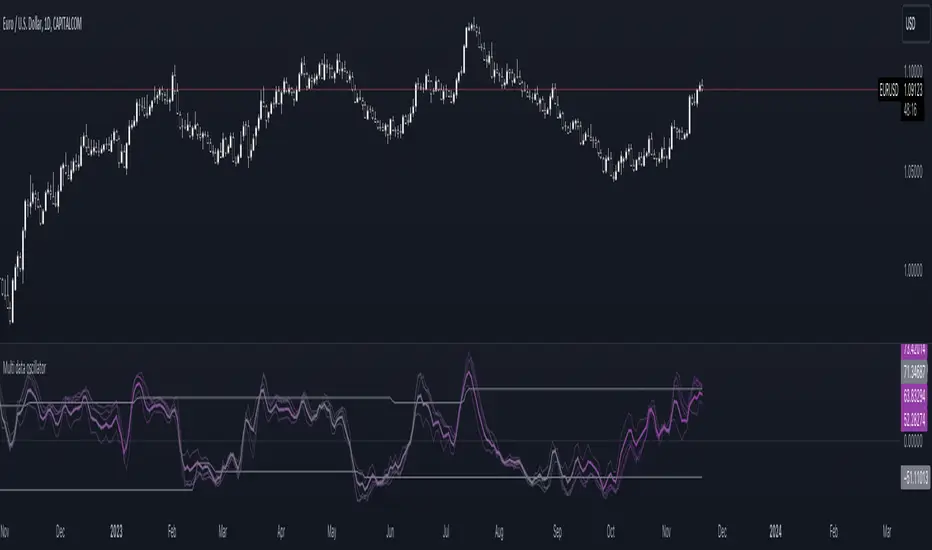 The multi-data oscillator is a tool created to help traders visualize clearly how an oscillator works and moves considering different input parameters.