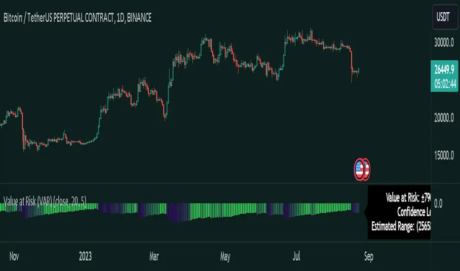 - The indicator also lets you see what the potential losses (Long and Short) of the asset can be with the confidence level of your choice.