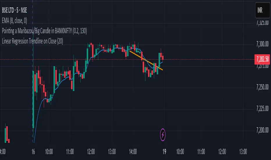 This indicator draws a linear regression trendline that connects the closing prices of the last N candles, where N is a user-defined input.