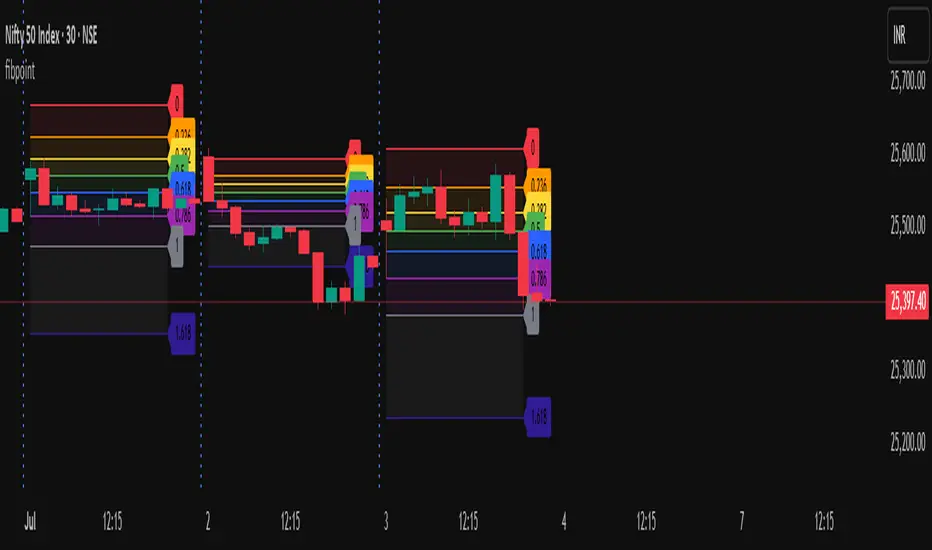 fibColors (array<color>): An optional array of colors for each Fibonacci level (default is a predefined color array).