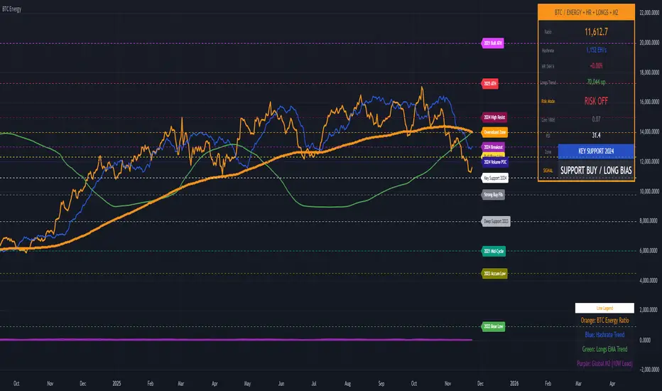 Risk Mode = RISK OFF → price is cheap vs miners → buy