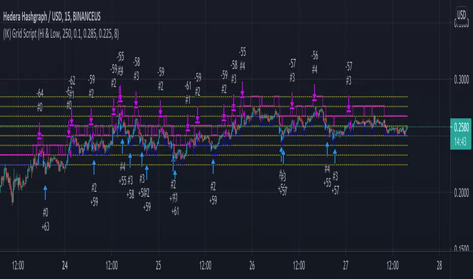 - Grid lines are spaced evenly between these two bounds. (I recommend anywhere between 5-10 grid lines, but this script lets you use up to 15. More gridlines = more/smaller trades)
