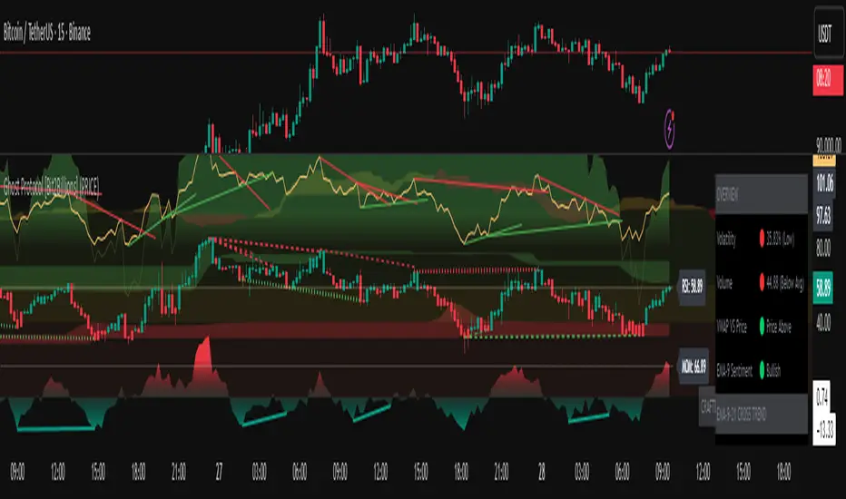 All RSI clouds, trend states, and regime changes respond to the Adaptive Layer, producing contextual momentum reading rather than isolated signals.
