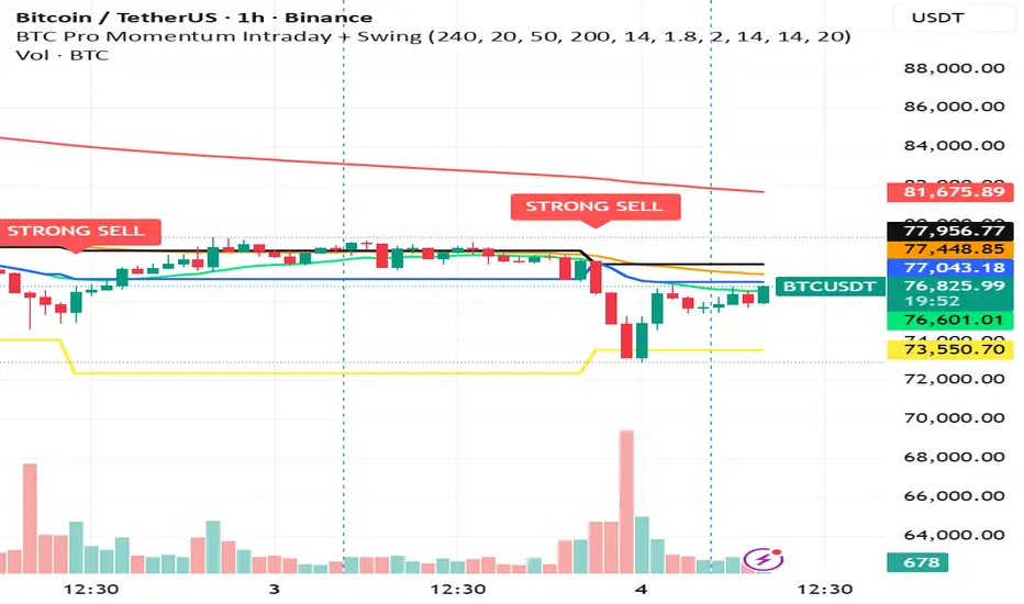 BTC intraday + swing indicator (Momentum + SL + Trail SL + Target)