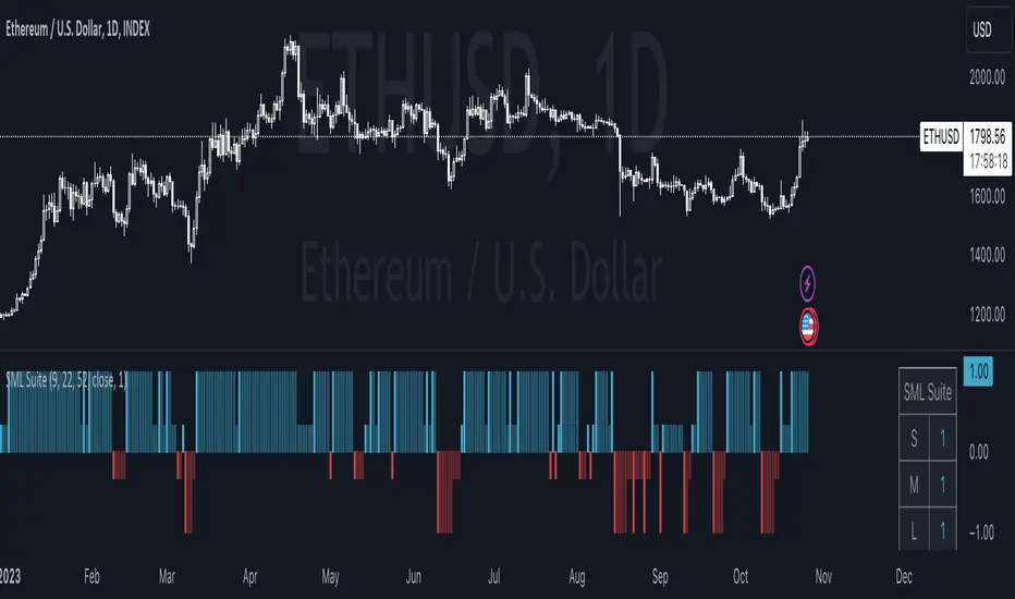 The "SML Suite" is a powerful and easy-to-use trading indicator designed to help traders make informed decisions in the world of financial markets. Whether you're a seasoned trader or a novice, this indicator is your trusty sidekick for evaluating market trends.