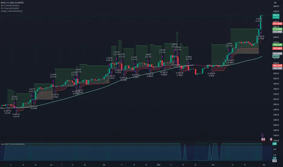 The connectable strategy serves as a foundational component in our indicator system on TradingView, designed for intuitive testing, visualization, and construction of trading strategies. In concert with the connectable signal filter, it forms a cohesive unit that allows for efficient signal processing and strategy implementation. This integration enables the strategy to receive and act on weighted signals from various connectable indicators, making it a versatile tool for both novice and experienced traders.