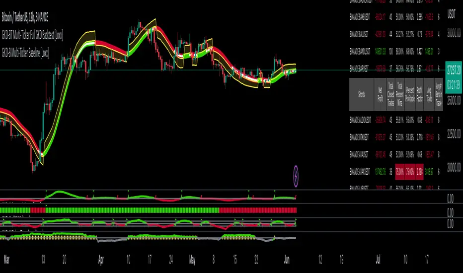 The Multi-Ticker Full GKD Backtest is a Full GKD backtest that allows traders to test single GKD-C Confirmation indicator filtered by a GKD-B Multi-Ticker Baseline, GKD-V Volatility/Volume, and GKD-C Confirmation 2 indicator across 1-10 tickers. In addition. this module adds on various other long and short signls that fall outside the normal GKD standard long and short signals. These additional signals are formed using the GKD-B Multi-Ticker Baseline, GKD-V Volatility/Volume, GKD-C Confirmation 2, and GKD-C Continuation indicators. The purpose of this backtest is to enable traders to quickly evaluate a Baseline, Volatility/Volume, Confirmation 2, and Continuation indicators filtered GKD-C Confirmation 1 indicator across hundreds of tickers within 30-60 minutes.