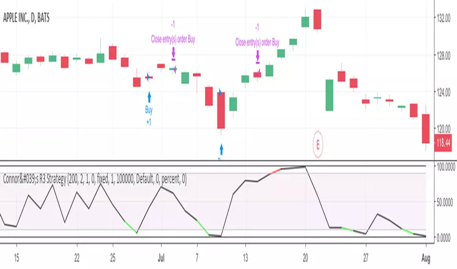 Created based on Connor's R3 Strategy. However, the signal always appears on the next candle, where it should appear at the closing price of the same candle.
