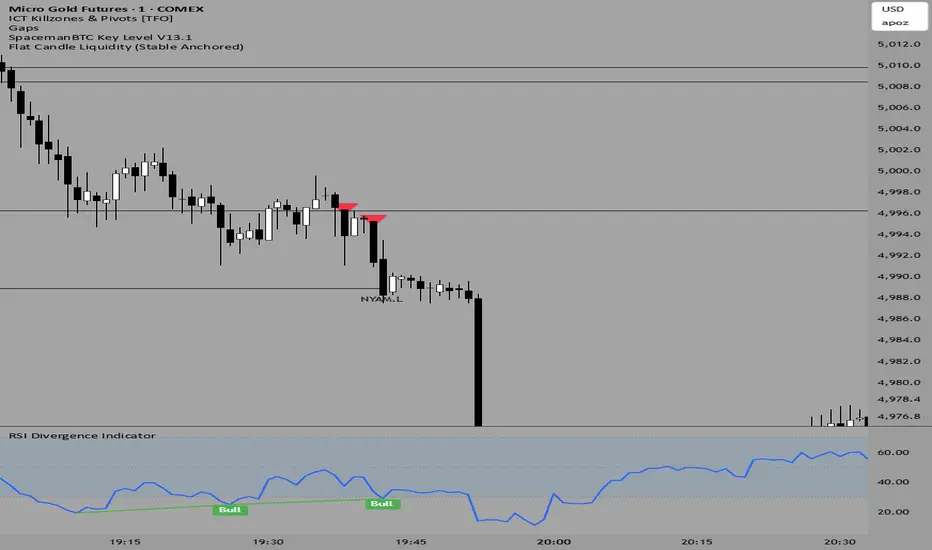 This is a simple indicator I created to help identify bearish or bullish flat candles. Once they have been swept the symbol above or below should disappear. You can adjust the settings for the placement of marker.(if symbols seem to be floating right click on the chart where you see the marker and go to select Pinned to Scale--select Pinned to Right Scale or Pinned to Left Scale)