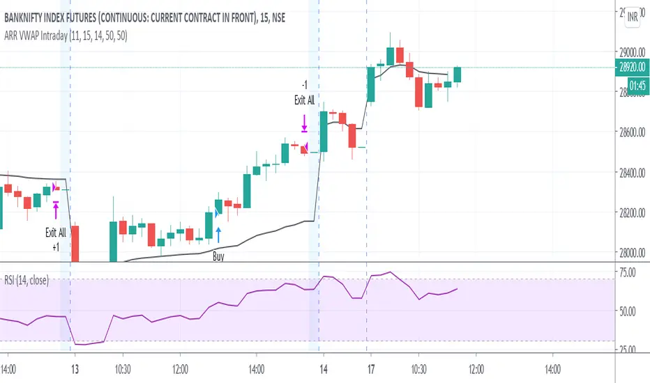 Buy when vwap goes up and RSI above 50 (Can be modified) .