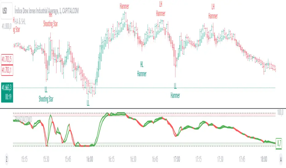 This indicator is ideal for traders looking for a clear representation of trends through Heikin Ashi candles and who want to identify key reversal points in the market by detecting swing highs/lows and candlestick patterns.