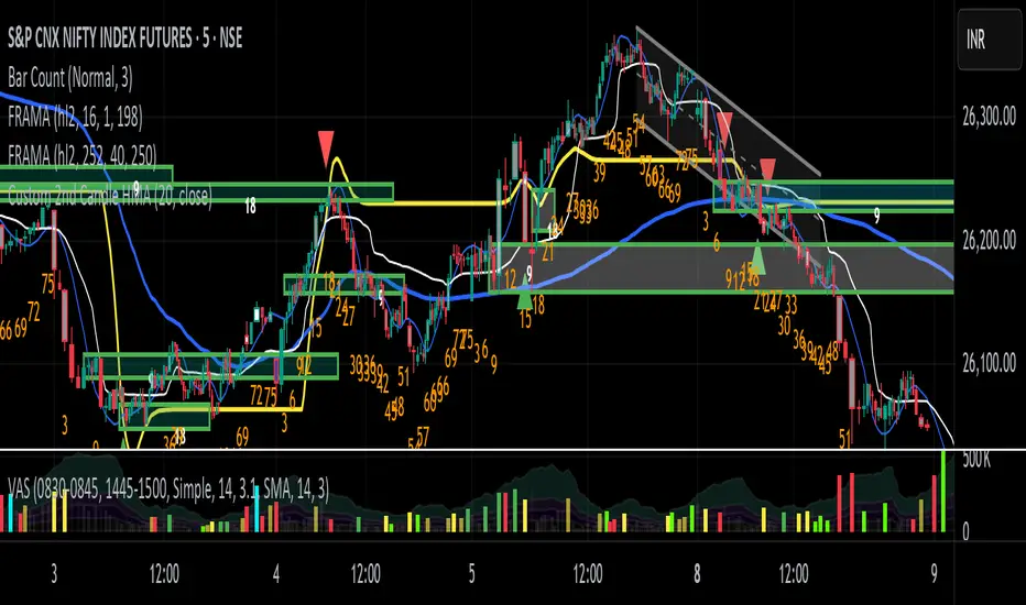 Its a simple hull moving avg script which connects the 2nd candle of 47 min time frame and ignoring everything else. This is specifically for NIFTY only. Why 47 min?? it perfectly divides the day into 8 candles. Why 2nd candle?? this is my personal observation that it is the actual noise free candle in a day .