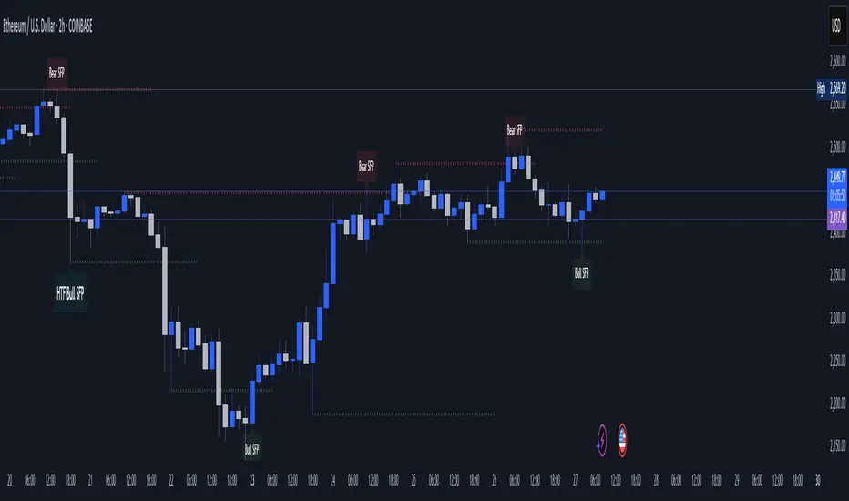 HTF Support: Detects higher timeframe pivots using request.security() and overlays HTF SFPs on the current chart.