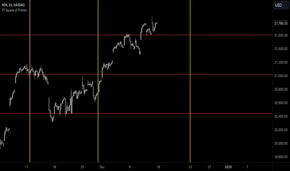 Price lines are drawn based on the progress of price around the square of 9, and the size of the square increases as price increases. So the distance between price lines will increase as price goes up, and decrease as price goes down.