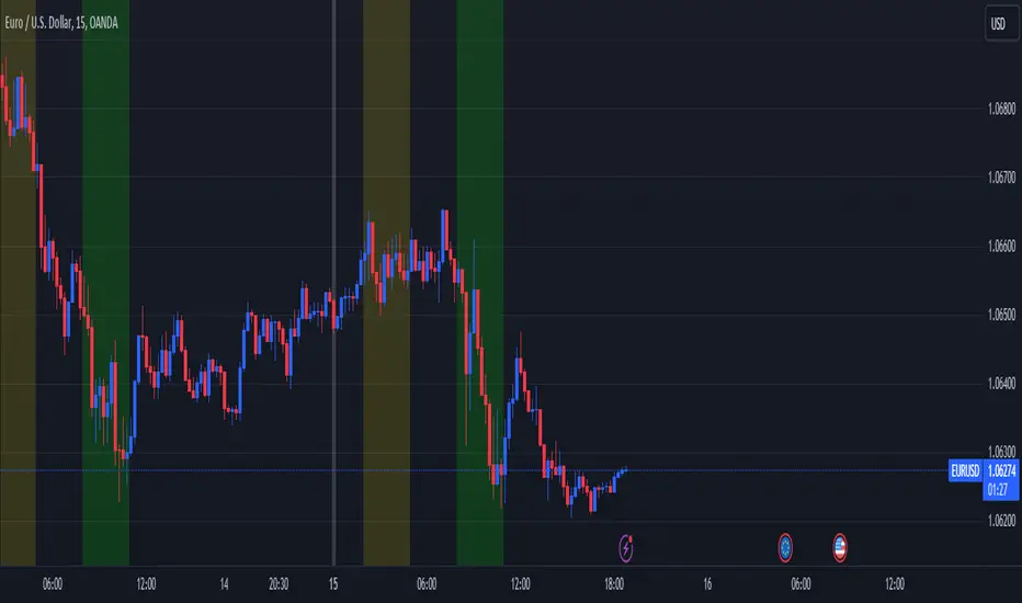 The indicator provides a clear and concise visualization of different trading sessions on the chart. Each session is represented by a color-coded background, allowing traders to quickly identify key trading periods and make informed trading decisions.