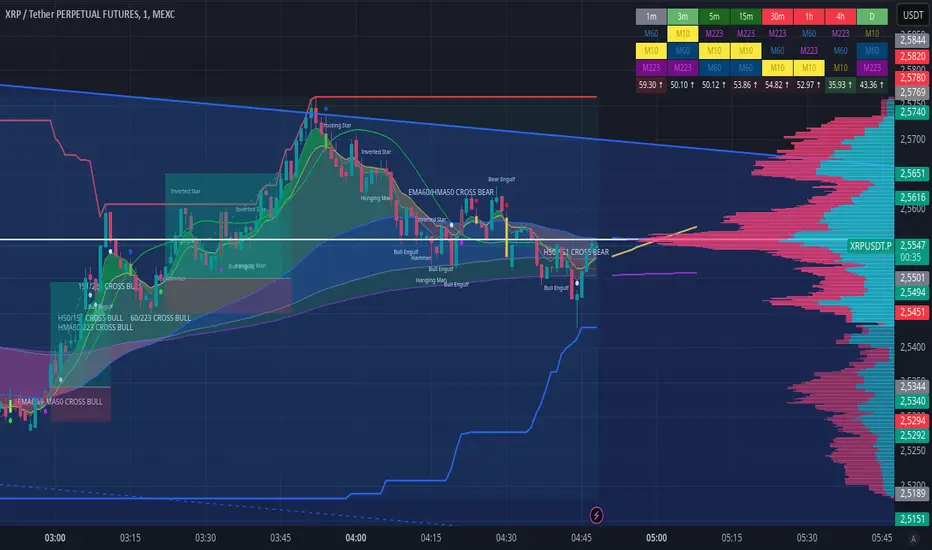 This powerful indicator combines multi-timeframe Exponential Moving Averages (EMAs), trend confirmation, predictive analysis, and advanced candlestick signals to provide traders with an all-in-one decision-making tool. By integrating EMA crossovers, HMA confirmations, RSI insights, and dynamic support/resistance levels, it enhances precision in spotting high-probability trade setups.📌 Key Features: