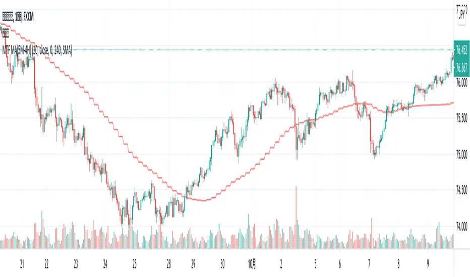 特定の時間軸にのみ表示されるマルチタイムフレーム移動平均線のインジケーターです。