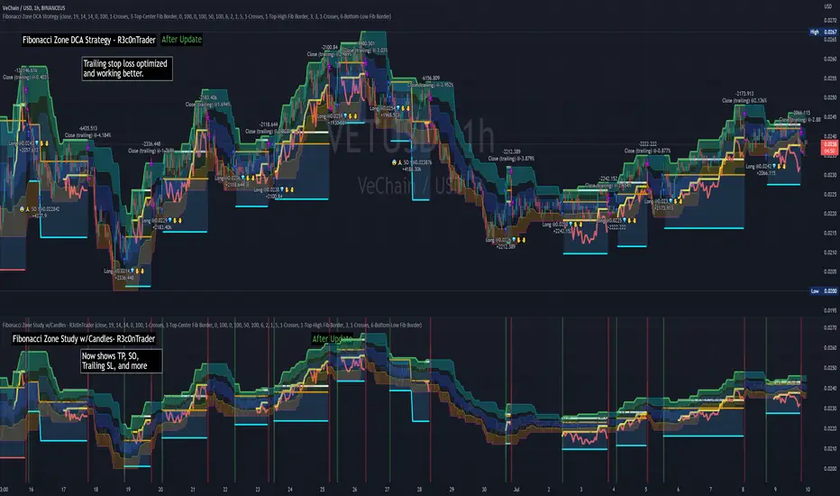 This study was created so it can be used with the strategy 'Fibonacci Zone DCA Strategy - R3c0nTrader' in order to generate buy/sell signals for a 3Commas bot.